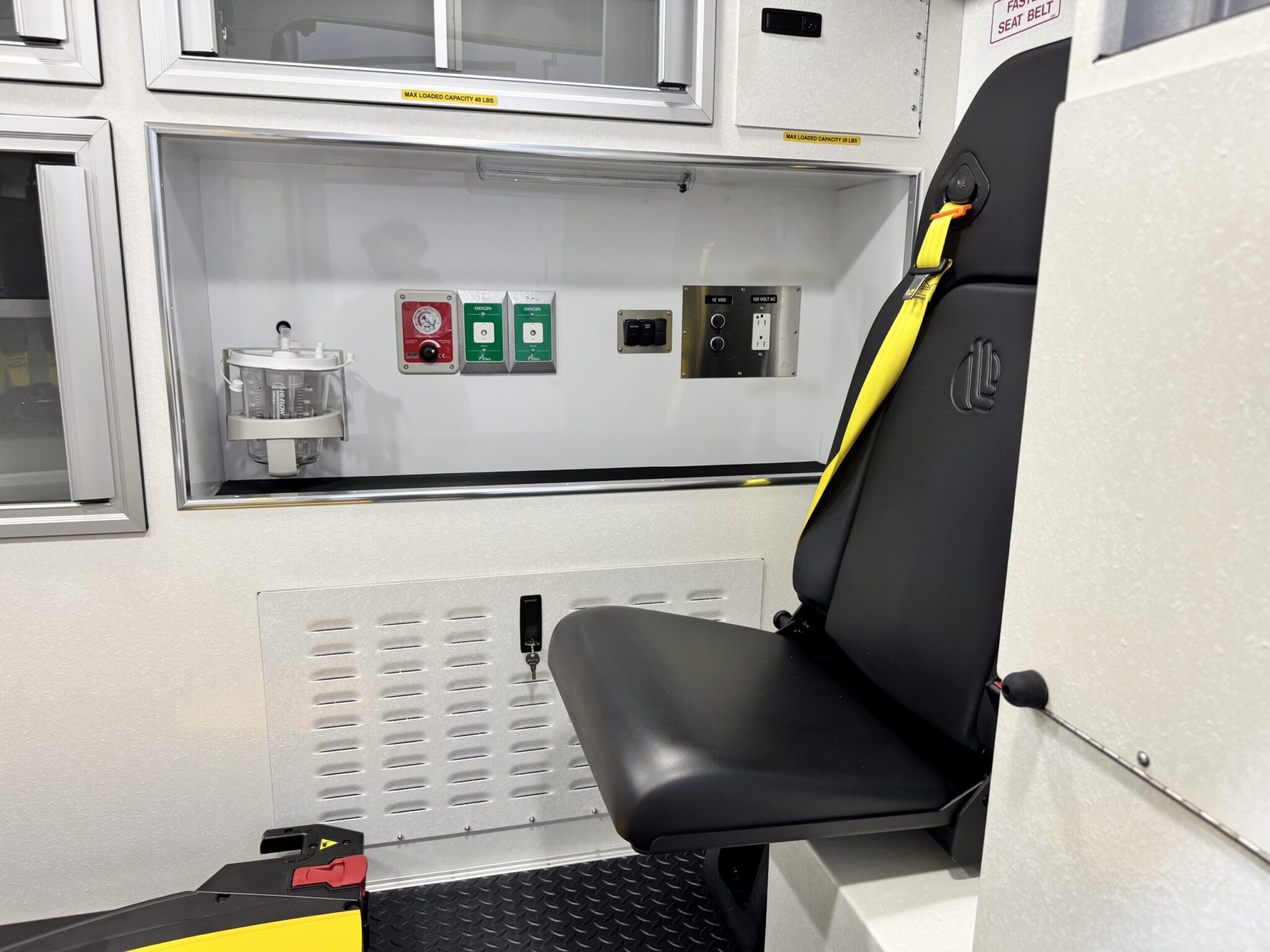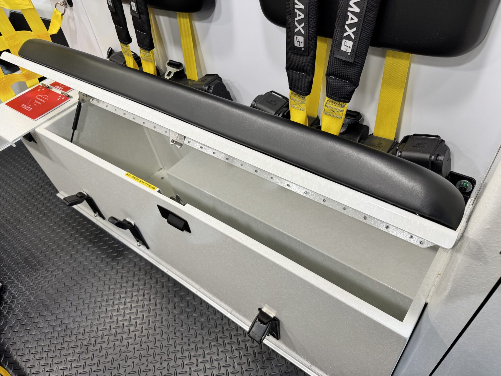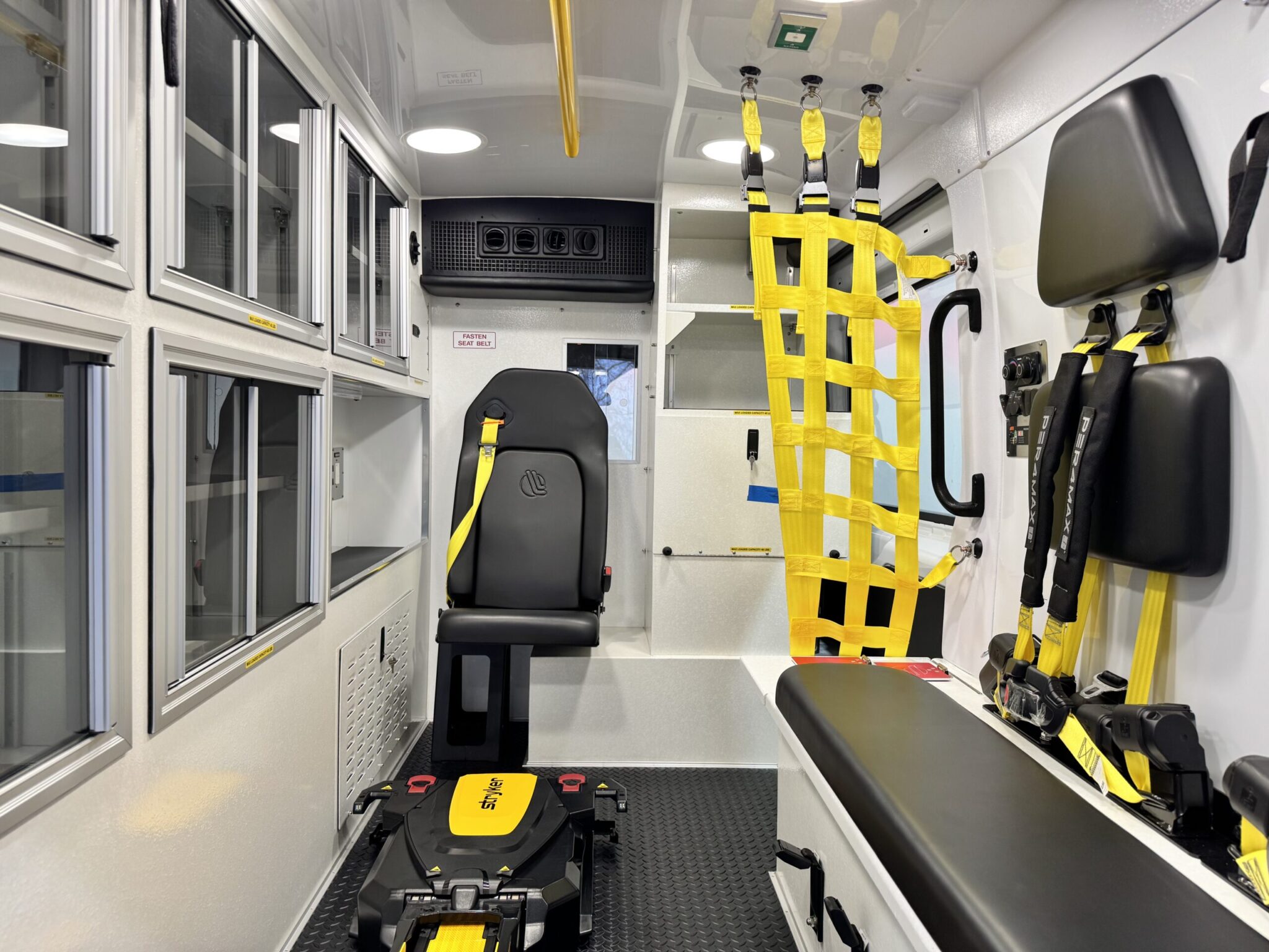 This unit is essentially brand new with only 477 original miles — yes, just 477 miles. It has never been placed into service and still has the original factory plastic on the seat belts, visors, and interior components. The ambulance was stored in a climate-controlled warehouse, and the undercarriage photos clearly show its like-new condition. Purchased new on 4/25/22 – never used.